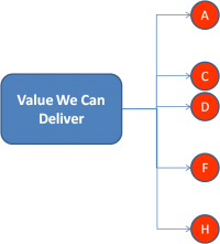 Clearly, our customer only cares about certain aspects of our value proposition (C,F, H). While we deliver other elements of “value” (A,D), the customer doesn’t care–so they are not valid value propositions for our customer. Regardless how compelling our value in these elements may be, it is meaningless to the customer.